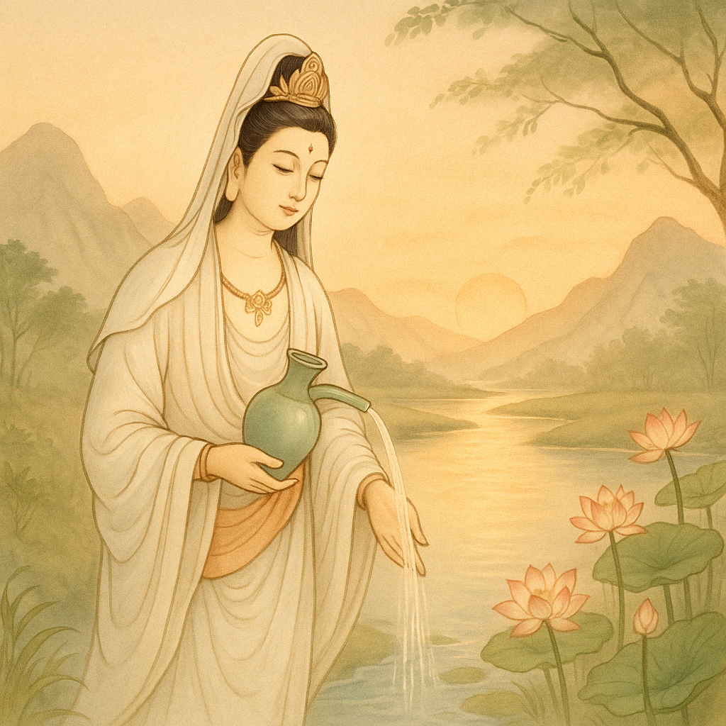Allo stesso modo, Guan Yin è vicina all’umanità come presenza silenziosa, compassione che si fa gesto, ascolto e azione.
